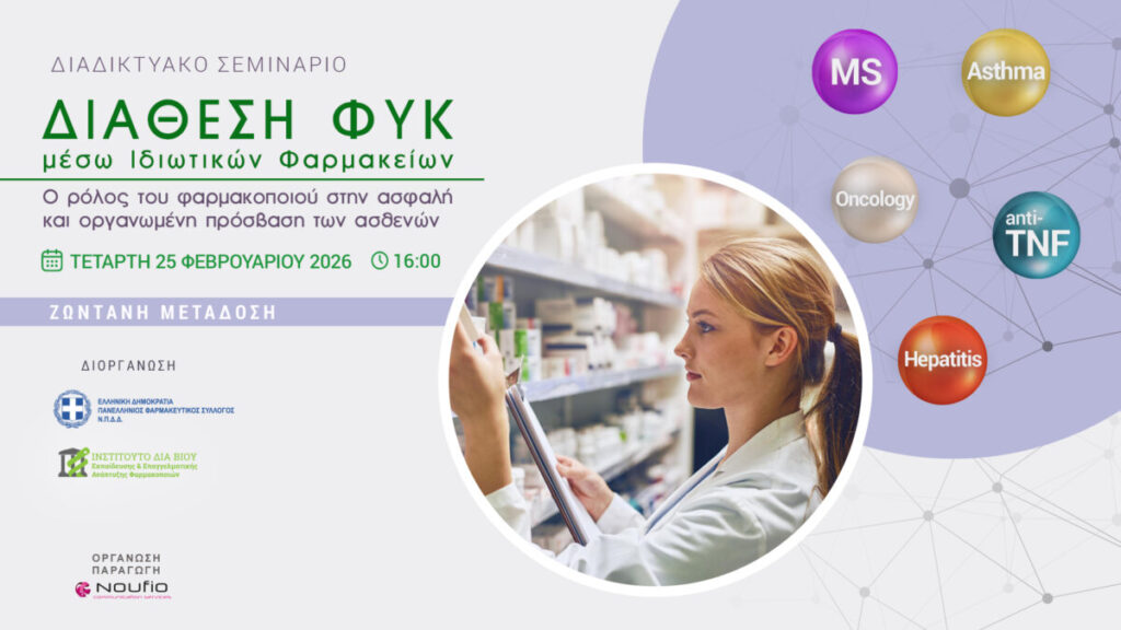 Διαδικτυακό Σεμινάριο Π.Φ.Σ. – ΙΔΕΕΑΦ “Διάθεση ΦΥΚ μέσω Ιδιωτικών Φαρμακείων” – Τετάρτη 25/02 και ώρα 16:00